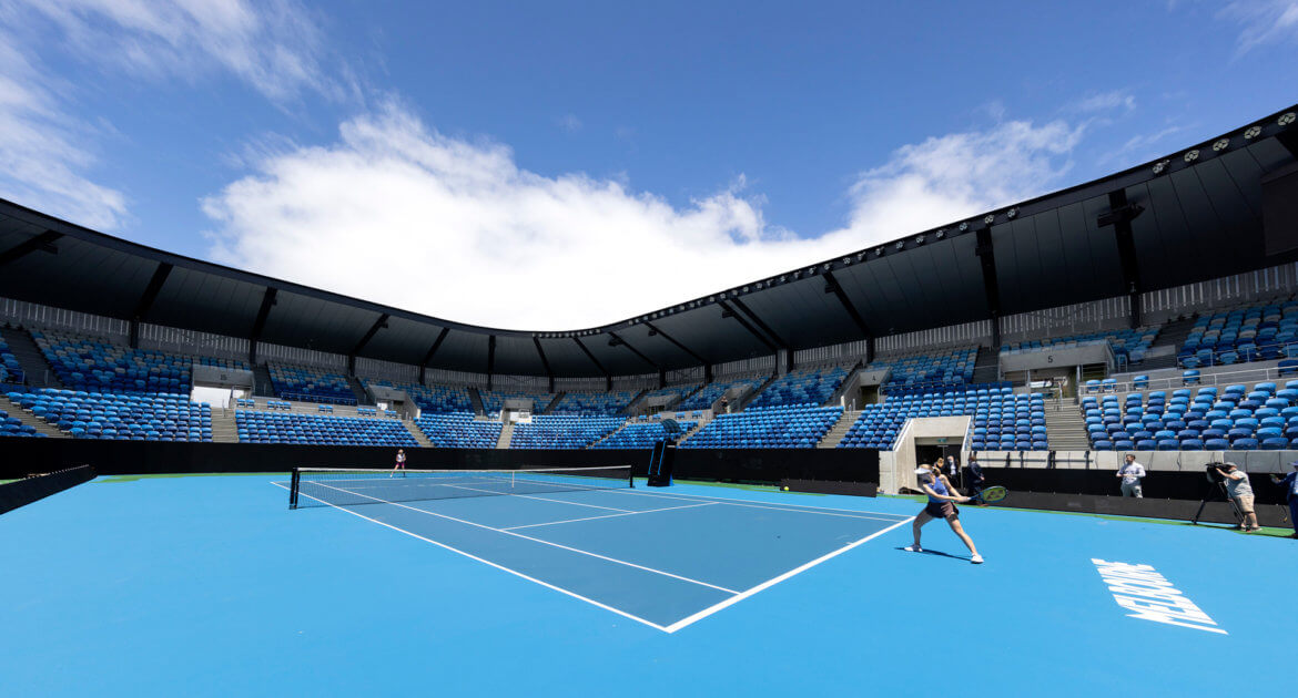 Partially sunken into the ground and located next to Rod Laver Arena, the Arena features an open-roof structure that provides shade and weather protection for fans, ensuring the Australian Open remains the most weather-proof of the Grand Slams.